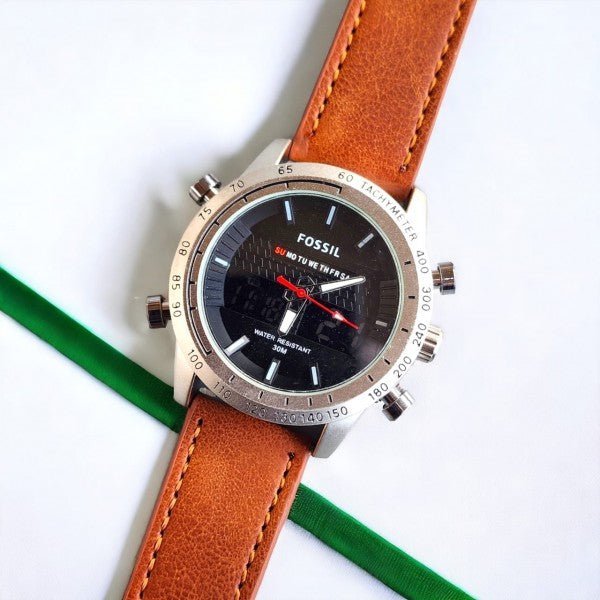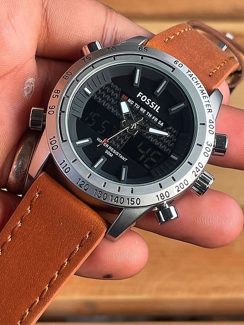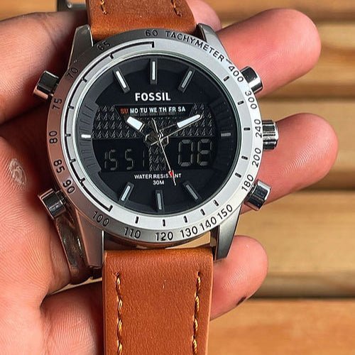 Fossil Analog-Digital Hybrid Chronograph Watch with Brown Leather Strap