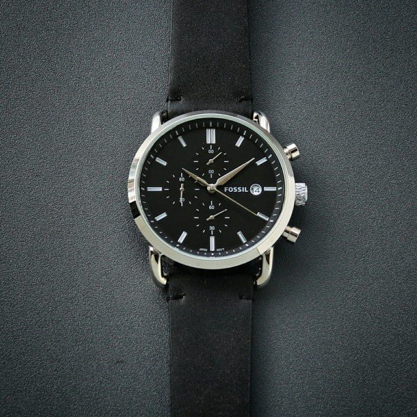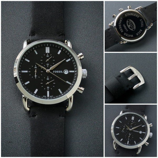 Fossil Chronograph Black Dial with Leather Strap Men’s Watch