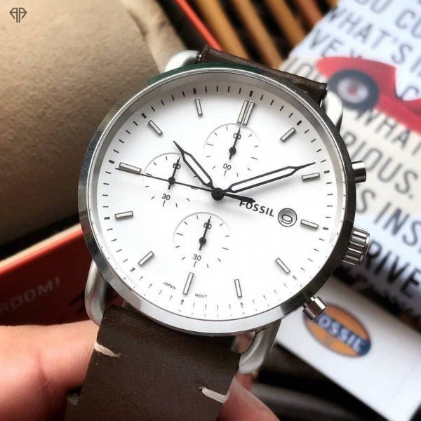 Fossil Analog-Digital Hybrid Chronograph Watch with Brown Leather Strap