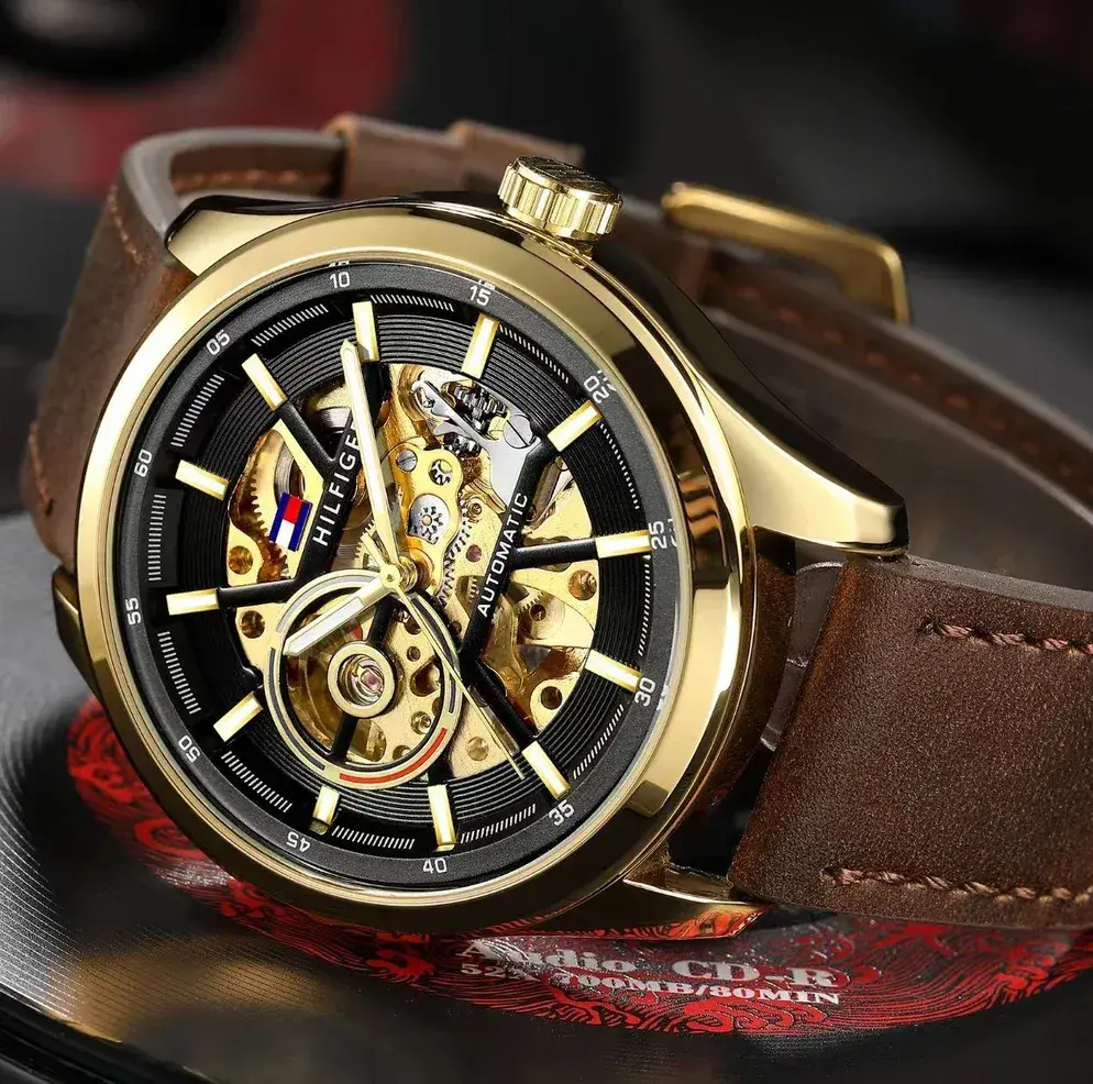 Tommy Hilfiger Automatic Leather Dark Brown Copper Black